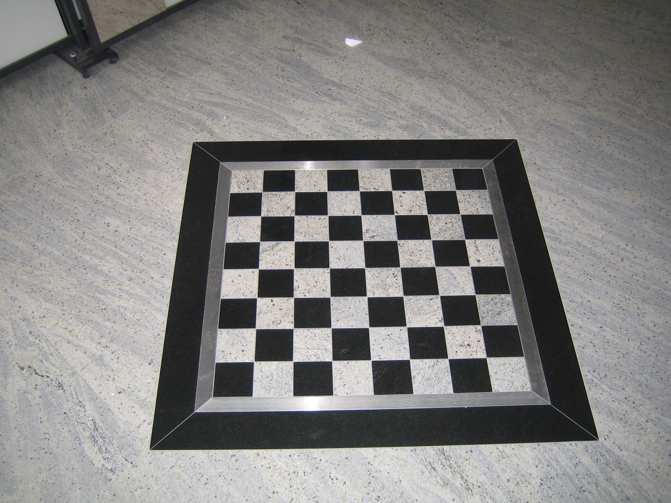 Schachbrett im Edelstahlrahmen aus